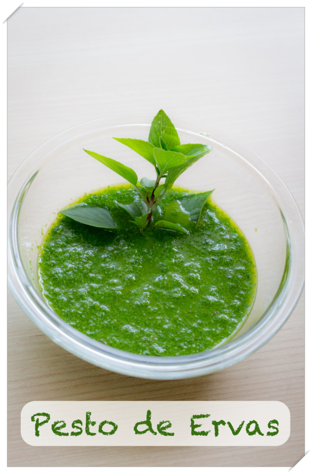 Além disso, você pode preparar vários tipos de pestos, de manjericão, de coentro ou com as ervas frescas que você tiver em casa. A opção de hoje é do Pesto de Ervas.