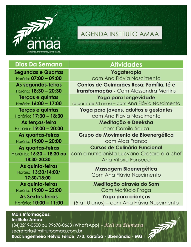 Além disso o Instituto Amaa é um espaço onde ministramos Cursos de Gastronomia Funcional, Meditação e aulas de Yoga.